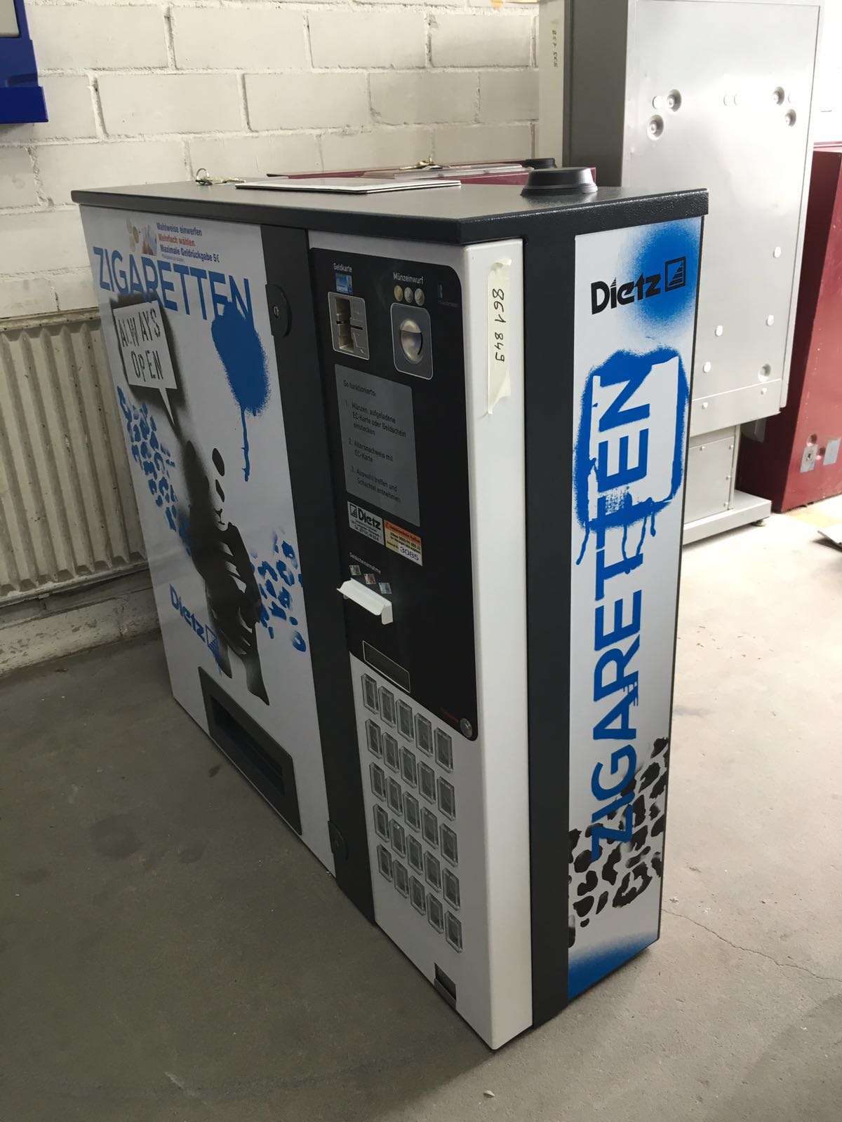 Die Zigarettenautomaten wurden mit lässige Graffiti-Stil überzigen. Sie laden zum weiterkritzeln ein – ganz legal im öffentlichen Raum. So werden Automaten zu kleinen Public-Art Kunstwerken an den Straßenecken.